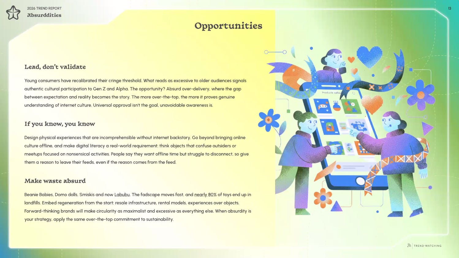 Trend Watching también celebra lo random para este 2026. Ya lo dijo Rosalía: no hay que tener miedo al cringe.